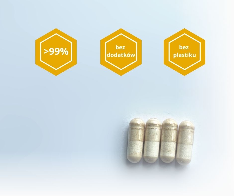 Ta czystość może powodować, że kapsułki z czasem nabiorą lekkiego żółtawego lub brązowego przebarwienia, najczęściej w miejscu łączenia. Jest to naturalna reakcja NMN na światło, która ma charakter wyłącznie estetyczny i nie wpływa na skuteczność ani bezpieczeństwo produktu.
