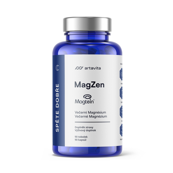 MagZen został opracowany specjalnie do stosowania wieczorem – zawiera formy magnezu, które pomagają rozluźnić mięśnie, stabilizują układ nerwowy i przygotowują organizm do regeneracji. Pozostałe składniki wspomagają również uwalnianie i produkcję hormonów snu. Razem tworzą synergistyczne połączenie, które wspomaga głęboki sen na kilka różnych sposobów.